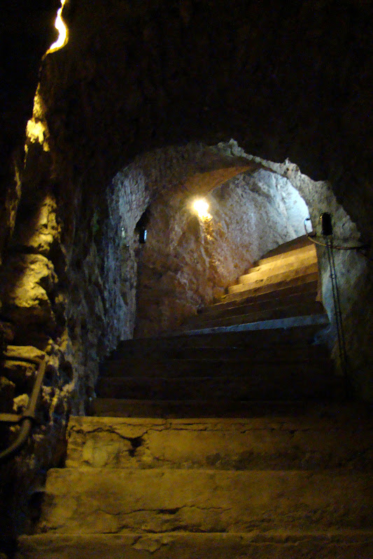 Отыскивая ногами ступеньки и утираясь - вода постоянно капала со стен. Но, сооружение величественное.