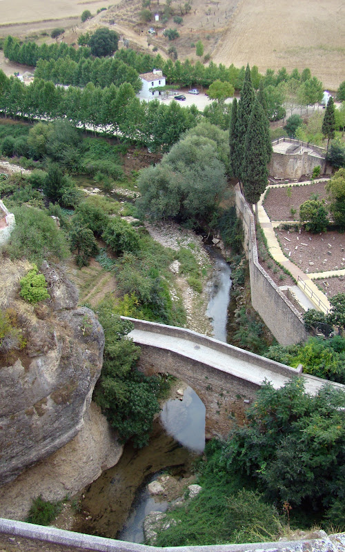 Арка - век 18, а мосты изначально в этих местах былисооружены еще маврами. Этот - Пуэнте Вьехо. Второй чуть далее, вон он там, Пуэнте Арабе - Арабский - а справа виднеется площадка, на которой, во дворе Арабских бань, набросаны остатки римских камней